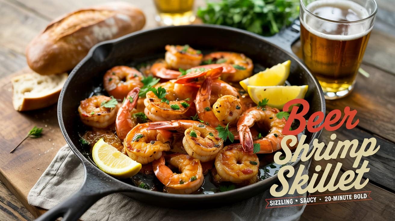 This Beer Shrimp Skillet is fast, fiery, and full of flavor — shrimp seared to perfection, then tossed in a buttery, garlicky beer reduction that coats every bite in malty, citrusy magic.