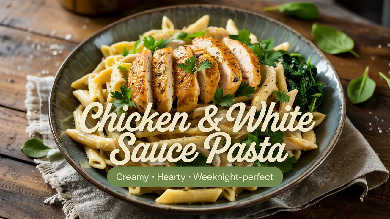 Chicken & White Sauce Pasta is creamy, comforting, and versatile — equally at home on a busy Monday or at a cozy dinner table with wine and garlic bread. It’s the perfect marriage of savory seared chicken and silky béchamel richness.
