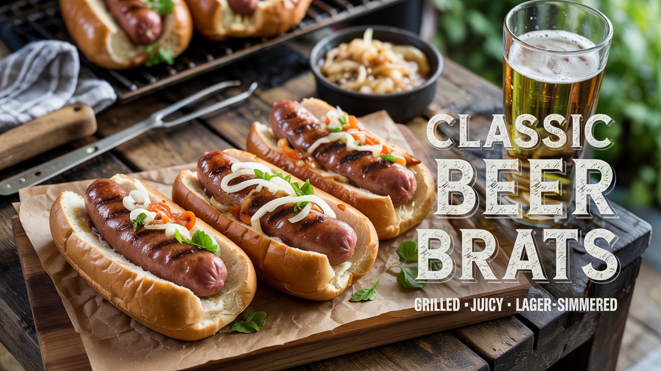 🍺 Classic Beer Brats (Grilled + Simmered) – Simmered in beer, finished on the grill — the brat gold standard.