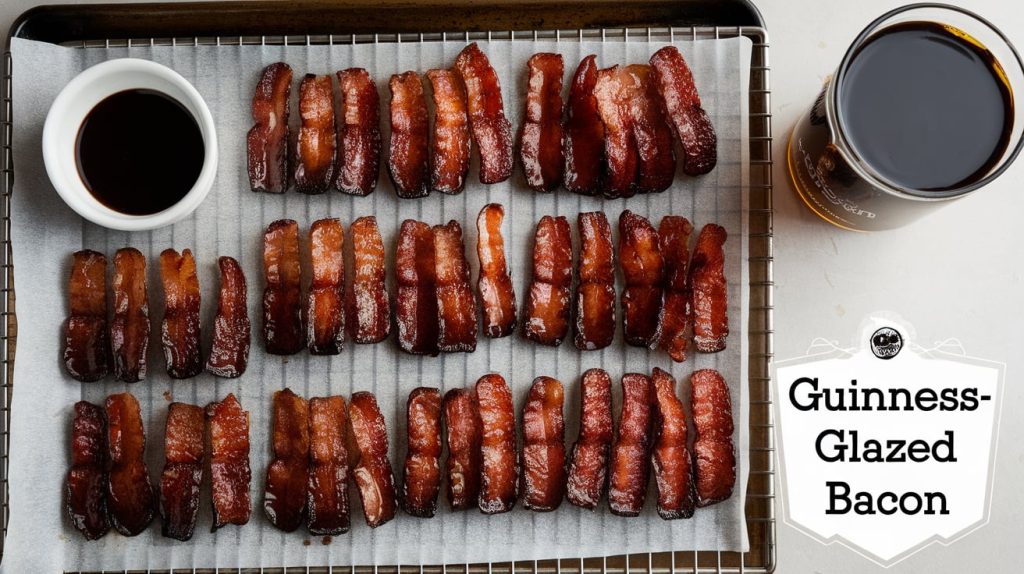 Thick-cut bacon brushed with a stout and brown sugar glaze, then baked until crisp and sticky.
