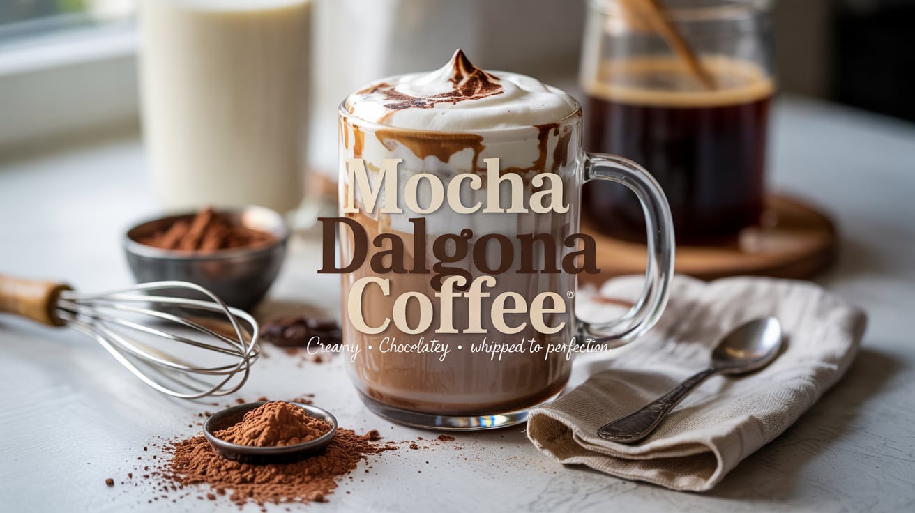 Mocha Dalgona Coffee is your perfect upgrade to the classic whipped coffee — rich chocolate folded into that signature fluffy coffee cloud, spooned over hot or cold milk for a drink that hits like a dessert with a buzz.