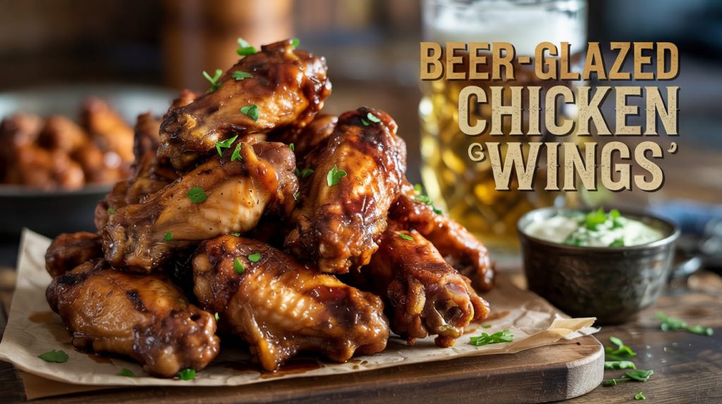 Fried or baked wings tossed in a sticky beer-based glaze with brown sugar, soy, garlic, and hot sauce.
