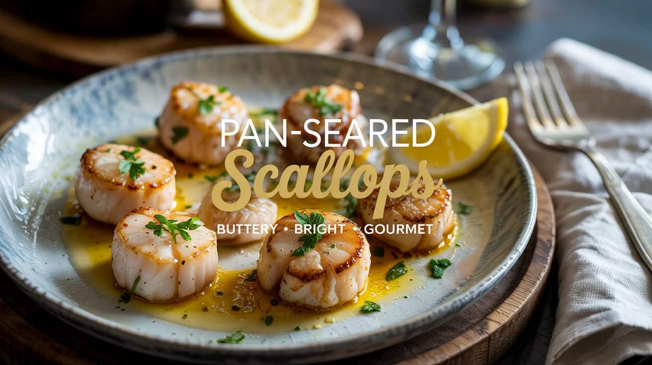Pan-seared scallops are restaurant-worthy yet easy to make at home. With a crisp golden crust, buttery interior, and a zesty lemon butter sauce, this dish makes an elegant appetizer or light main course.