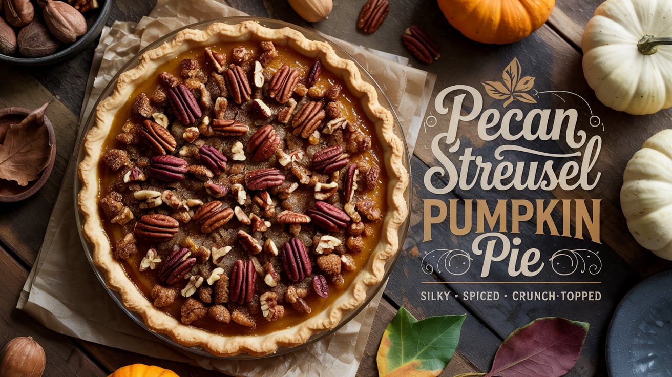 This pie marries the smooth richness of pumpkin custard with the irresistible texture of pecan streusel. The spiced crumble topping bakes into a crisp, nutty layer that turns a classic pumpkin pie into something truly show-stopping.
