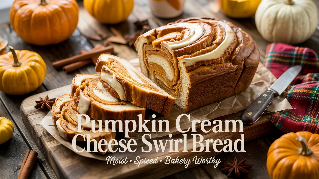 - 🍥 Pumpkin Cream Cheese Swirl Bread – Creamy ribbon through moist bread.