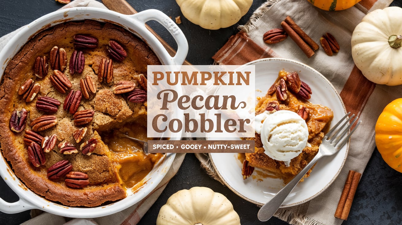 Pumpkin Pecan Cobbler is warm, gooey, and packed with fall flavor — a cross between pumpkin pie and a molten cake. With its spiced base, buttery pecans, and built-in sauce, it’s a dessert that tastes like autumn comfort in every bite.