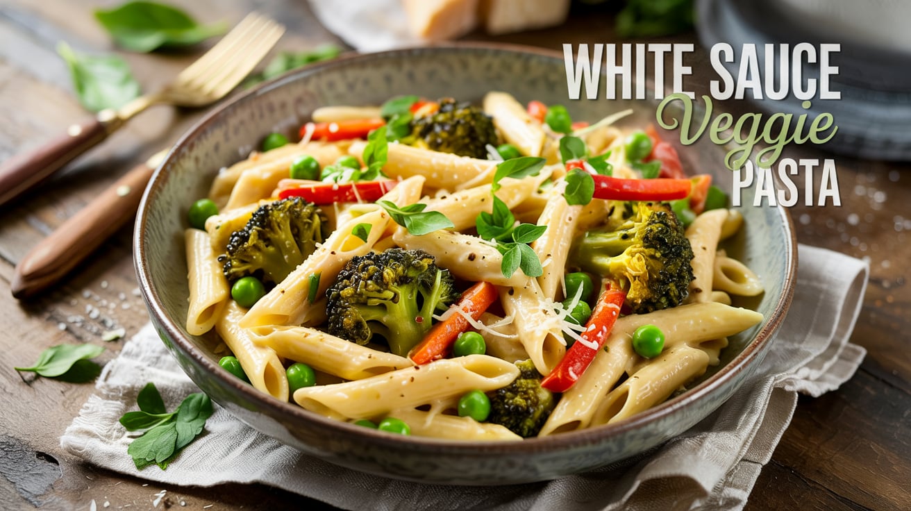 White Sauce Veggie Pasta 🥦🧅🧄🧈 Creamy, Colorful, and Packed With Tender Veggies in a Silky White Sauce